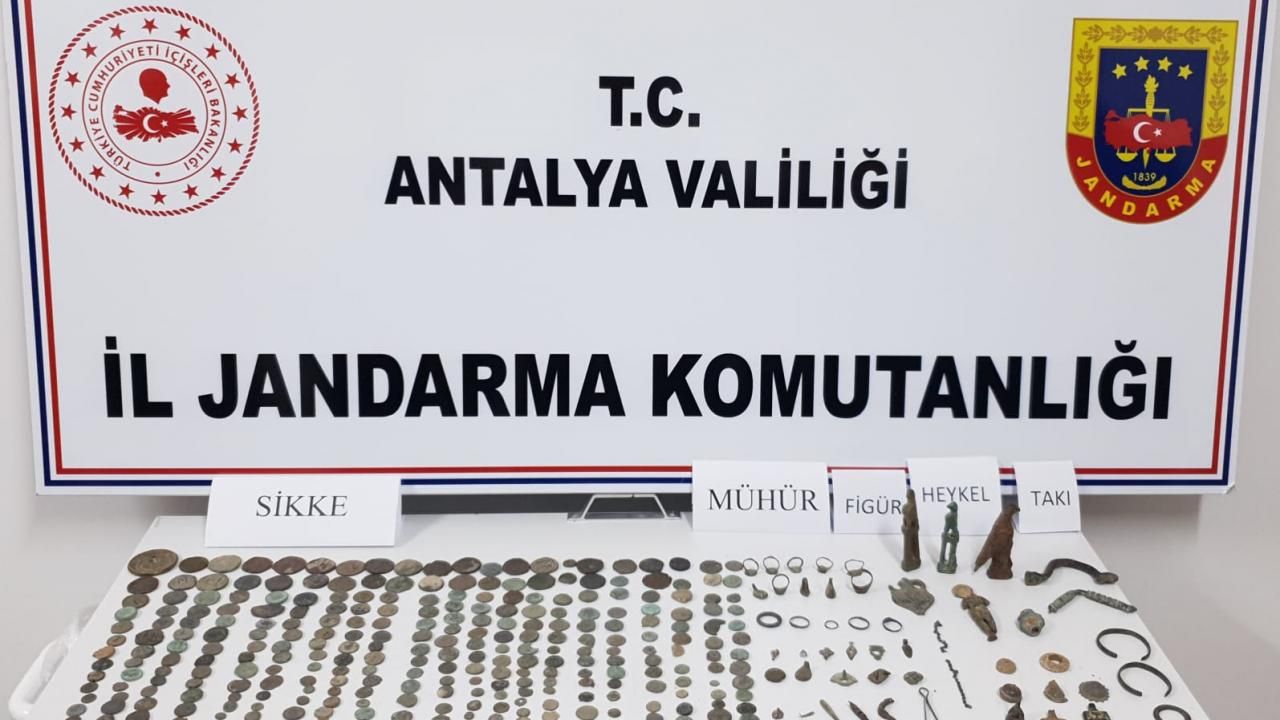 Antalya'nın Demre ve Finike ilçelerinde gerçekleştirilen tarihi eser operasyonunda, 1840 sikke, 1 tarihi madalyon, 7 tarihi obje ve 1 dedektör ele geçirildi.