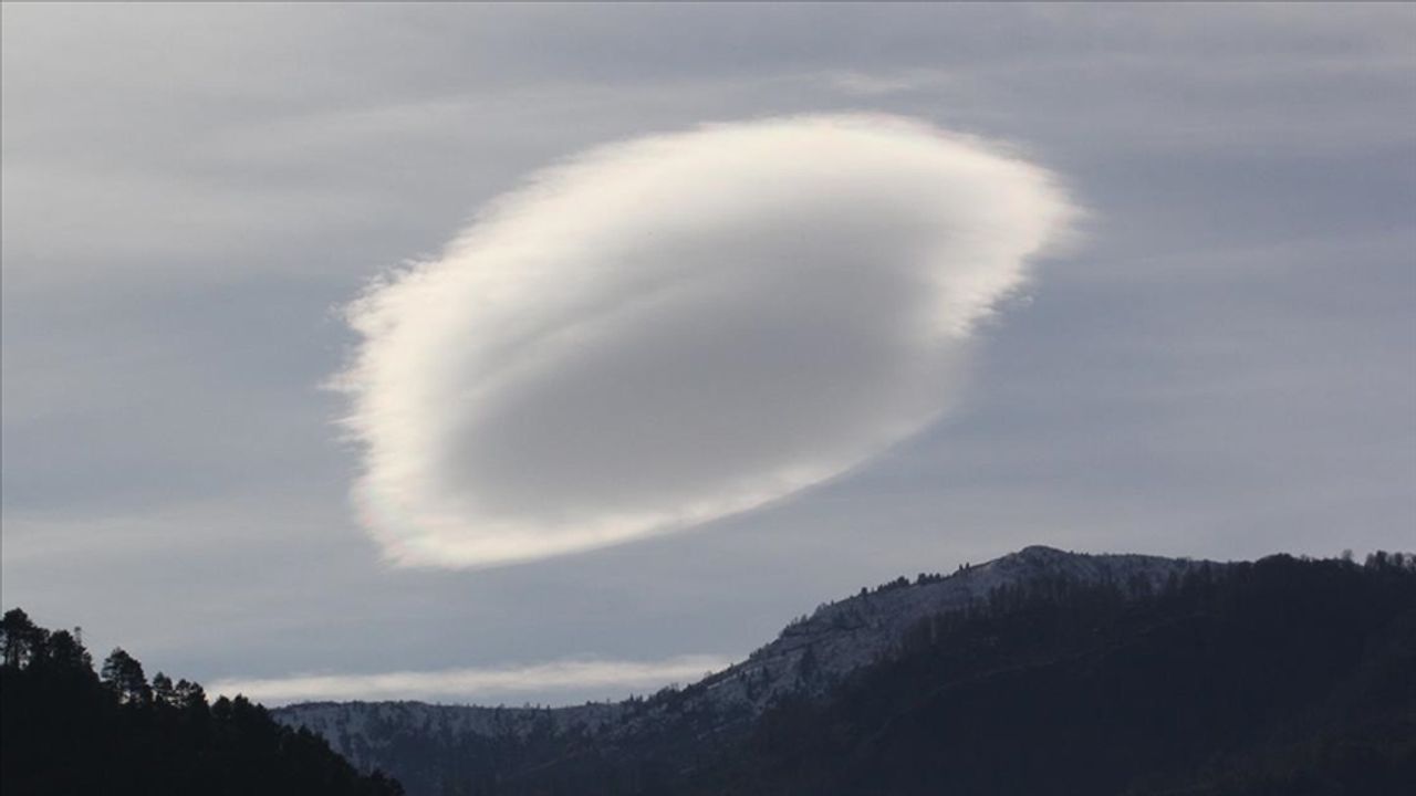 Arhavi ilçesinde gökyüzünde çok katmanlı mercek bulutu oluştu. Görenlerin ilgisini çeken bulut, bir süre sonra dağıldı.