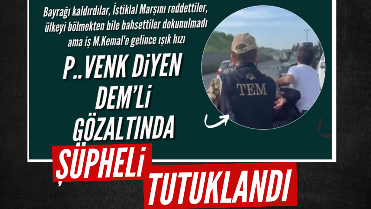 Adalet Bakanı Yılmaz Tunç, Diyarbakır Sur Belediyesinin makam odasında Gazi Mustafa Kemal Atatürk ve Cumhurbaşkanı Recep Tayyip Erdoğan'a yönelik hakaret içeren sözler sarf ettiği gerekçesiyle gözaltına alınan şüpheli hakkında sulh ceza hakimliğince tutuklama kararı verildiğini bildirdi.