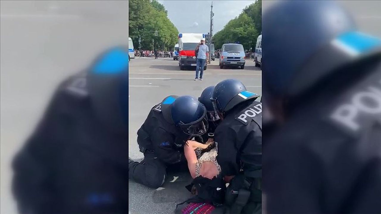 Berlin polisinden yapılan açıklamada, Kovid-19 önlemlerine uymayan söz konusu kadının, gözaltına alınmak istenirken şiddete uğramasının ardından soruşturma açıldığı kaydedildi.