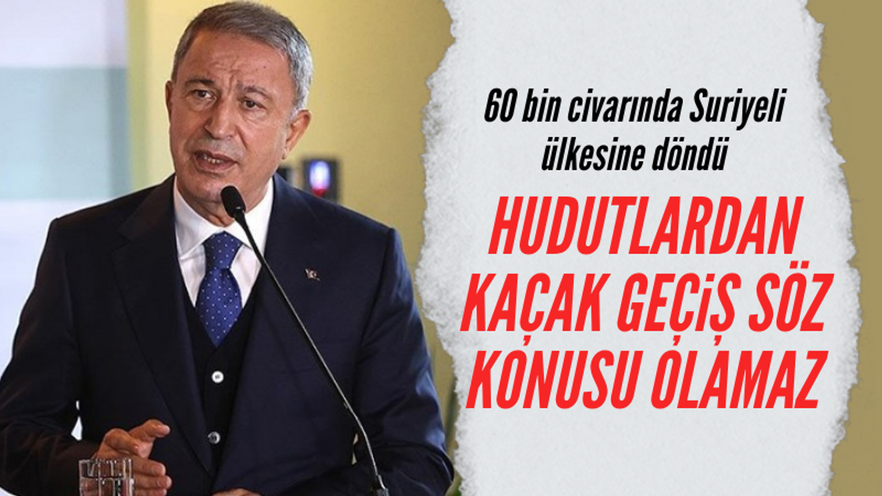 Gün boyunca hudut birliğinde incelemelerde bulunduğu belirtilerek sınırdan yasa dışı geçiş iddiaları ve ülkelerine dönen Suriyelilere ilişkin soru üzerine Akar, "Sınırdan yasa dışı geçiş iddiaları kesinlikle gerçeği yansıtmamaktadır. Hudutlarımız 7 gün 24 saat ileri teknoloji ürünü araç, gereçlerle Cumhuriyet tarihinin en yoğun tedbirleriyle gece-gündüz korunmakta, kollanmakta, gözetlenmektedir. Her türlü tedbiri alıyoruz. Deprem felaketi sonrası dahil zaman zaman siyasi mülahazalarla, şahsi ihtiraslarla gerçek dışı, abartılı, yanıltıcı söylemlerle hudut güvenliği, polemik konusu haline getirilmek isteniyor. Bu son derece yanlış bir davranıştır." ifadelerini kullandı.