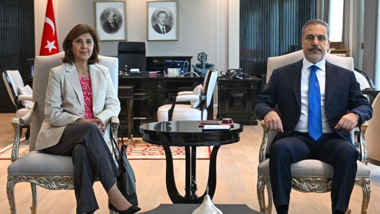 "Bakanımız Hakan Fidan, Ankara'da BM Genel Sekreteri'nin Kıbrıs Konusunda Şahsi Temsilcisi María Angela Holguín Cuéllar'ı kabul etti."