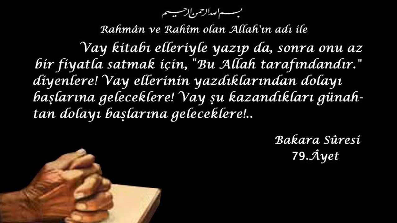 79. Fe veylul lillezîne yektubunel kitabe bi eydîhim summe yekulunel kitabe bi eydîhim summe yekulune haza min îndillahi li yeşteru bihî semenen kalîla* fe veylul lehum mimma ketebet eydîhim ve veylul lehum mimma yeksibun