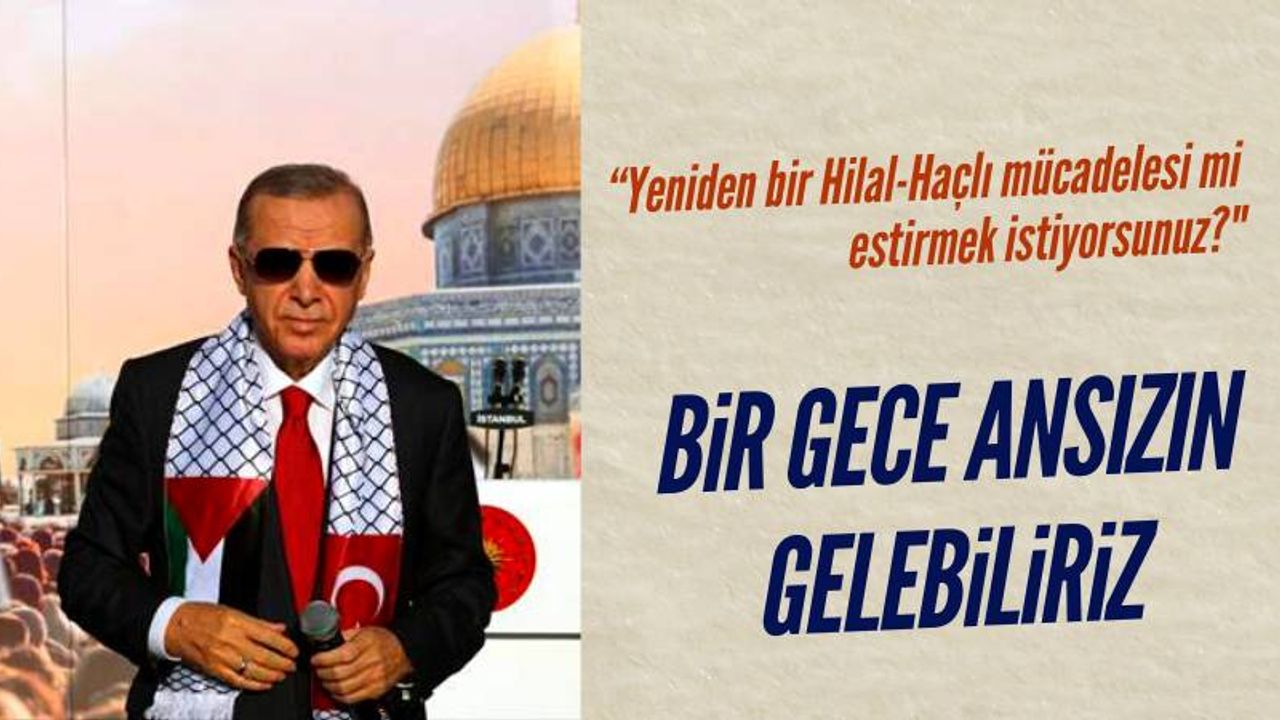 Cumhurbaşkanı Erdoğan, "Hilal-Haçlı" savaşı çıkarma girişiminde bulunanları uyararak, terörle mücadelede kararlı olduklarını vurguladı ve "Bir gece ansızın gelebiliriz" hatırlatmasını yaptı.