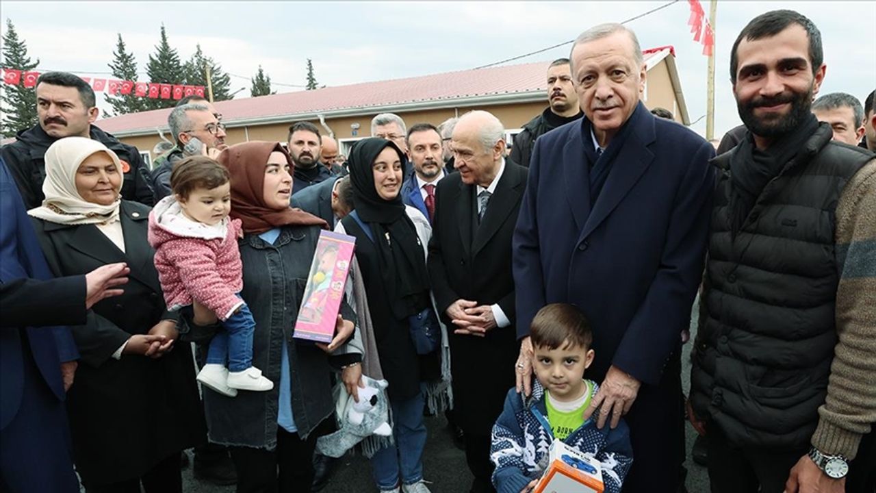 Cumhurbaşkanı Erdoğan, depremden etkilenen vatandaşlar için yapılacak 17 bin 902 konutun temel atma töreni için geldiği kentte ilk olarak AFAD Kocaeli Çarşısı'na geçti.