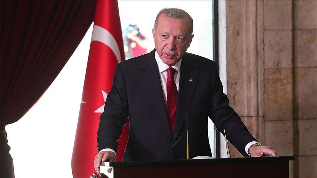 Cumhurbaşkanı Erdoğan, Atatürk'ün mozolesine ay yıldız motifli çelengi bıraktı. Saygı duruşunun ardından İstiklal Marşı okundu.