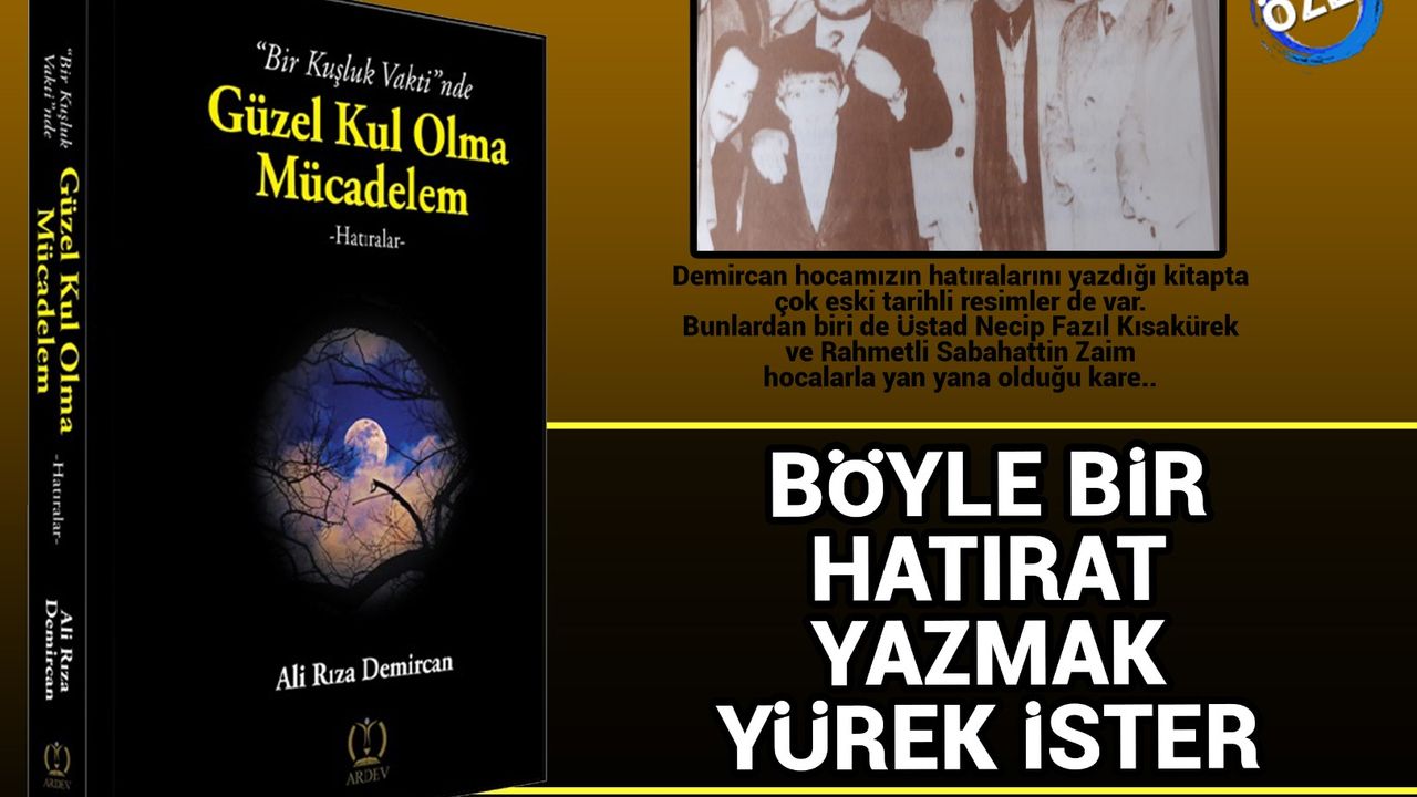TOPLUMA mal olmuş insanların, hatıralarını yazması ve bunları sevenleriyle paylaşması bana göre son derece "alicenap" bir davranış… Fakat hatıra yazmak o kadar kolay değil… Bu açıdan bakıldığında Ali Rıza Demircan Hocaefendi'nin hatıratını bir roman keyfinde okudum ve inanın çok beğendim.
