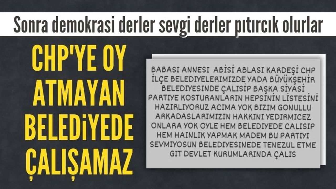 "Babası, annesi, abisi, ablası, kardeşi CHP ilçe belediyelerimizde ya da Büyükşehir Belediyesi'nde çalışıp başka siyasi partiye koşturanların hepsinin listesini hazırlıyoruz.