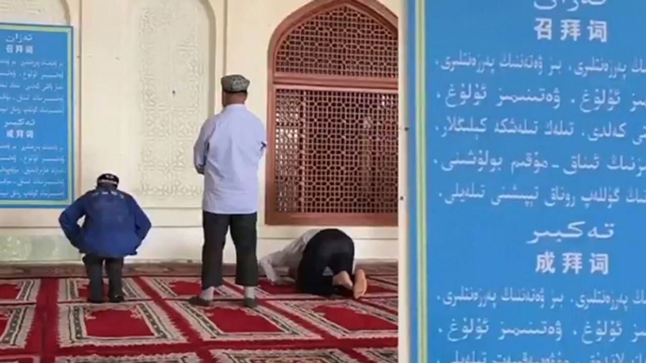 Doğu Türkistan'ın Hotan bölgesindeki Guma yerleşimindeki bir camiden aktarılan görüntüler, değiştirilen ezanı ortaya koyuyor.