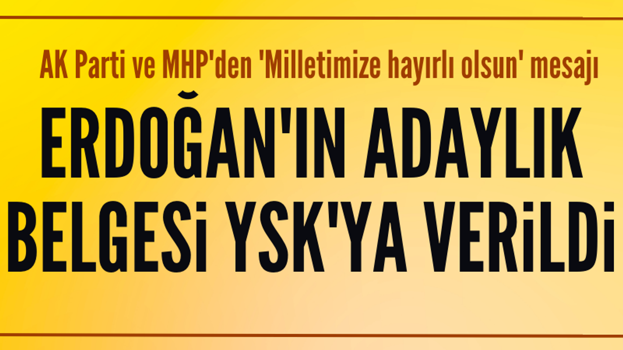 "Milletimize hayırlı olsun... Yüce Allah, Cumhurbaşkanımıza daha nice hizmetler yapmayı nasip etsin. Milletimizin ve ülkemizin geleceği için her türlü bedeli ödemiş olan Cumhurbaşkanımızın yolu her daim açık olsun…Bugün saat 15.00’te Cumhur İttifakı’nın Cumhurbaşkanı Adayı, Cumhurbaşkanımız Recep Tayyip Erdoğan’ın adaylık belgesini teslim etmek üzere AK Parti Grup Başkanımız Sn İsmet Yılmaz ile Genel Başkan Yardımcımız ve Seçim İşleri Başkanımız Sn Ali İhsan Yavuz YSK’ya gidecekler… MHP Grup Başkan Vekili Sn Erkan Akçay ile MHP Hukuk ve Seçim İşlerinden sorumlu Genel Başkan Yardımcısı Sn Feti Yıldız da MHP Grubunun Cumhurbaşkanımızın adaylığıyla ilgili aldıkları kararı teslim edecekler. Cumhurbaşkanımızın adaylığına desteğini açıklayan Cumhur İttifakı üyesi tüm siyasi partilere teşekkür ediyoruz. Milletimizin bütün fertlerine ve tüm siyasi partilerin temelini oluşturan vatandaşlarımıza şükranlarımızı sunuyoruz."