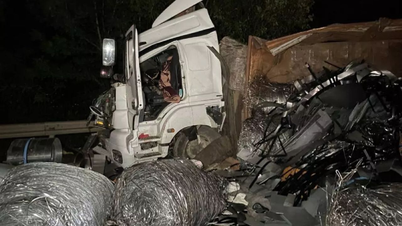 Dehşet verici kazada, tırın taşıdığı demir borular ise sürücü camını kırarak dışarı çıktı.