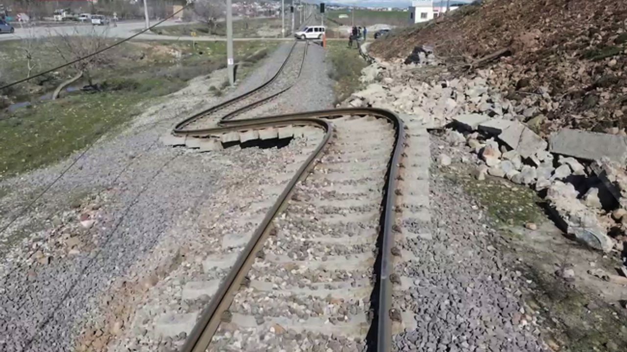 Kahramanmaraş'ın Türkoğlu ilçesi ile Gaziantep'in İslahiye ilçesi arasındaki tren rayları, 10 ili etkileyen depremlerin etkisiyle büküldü.