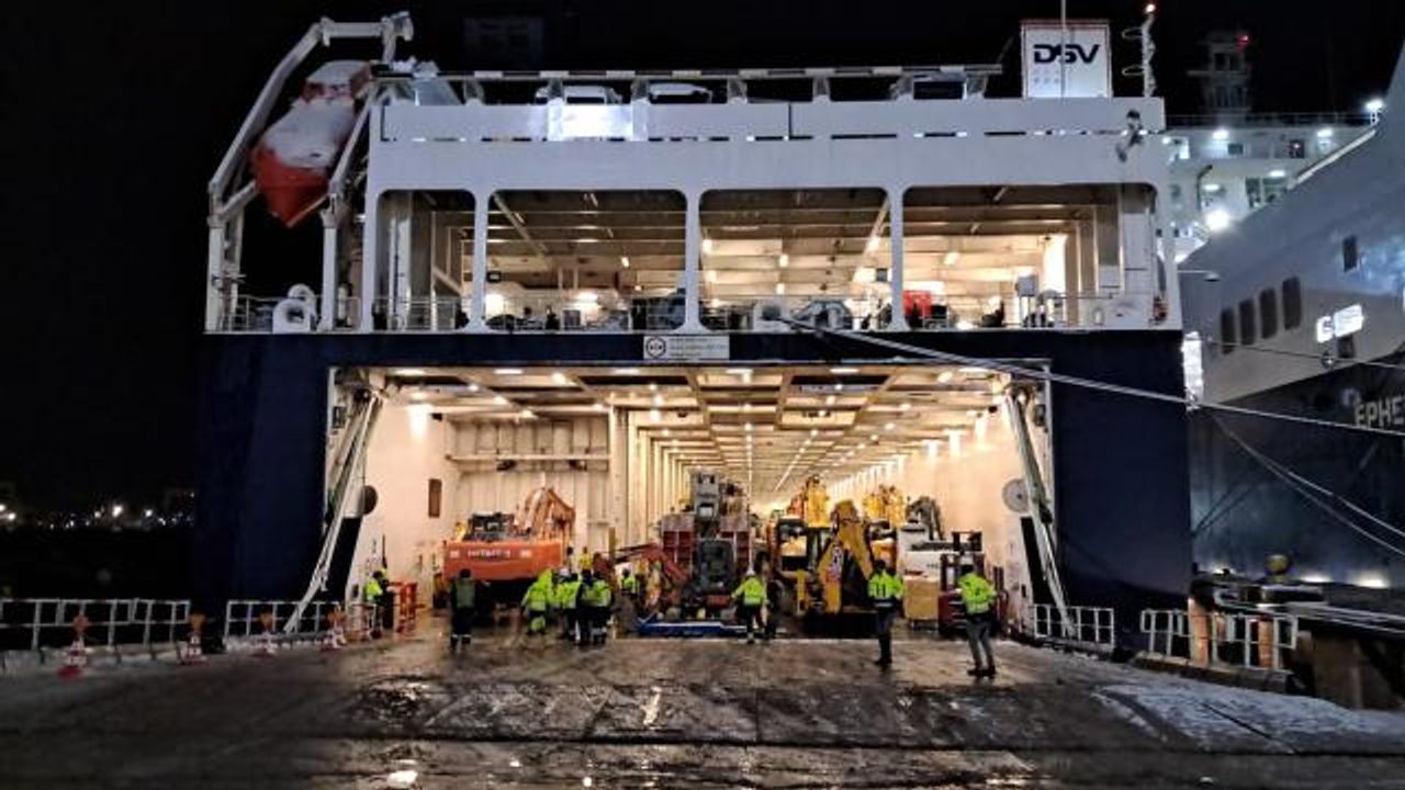 Yardım malzemesi yüklenen gemi, 74 çekici-dorse, 15 roll trailer, 34 vinç, 21 kepçe, 35 kamyon, 41 ekskavatör, 11 dorse ve 31 çeşitli araç olmak üzere toplam 254 aracı deprem bölgesine ulaştıracak. Gece 03.00'te yola çıkan geminin yarın gece İskenderun'a ulaşması bekleniyor.