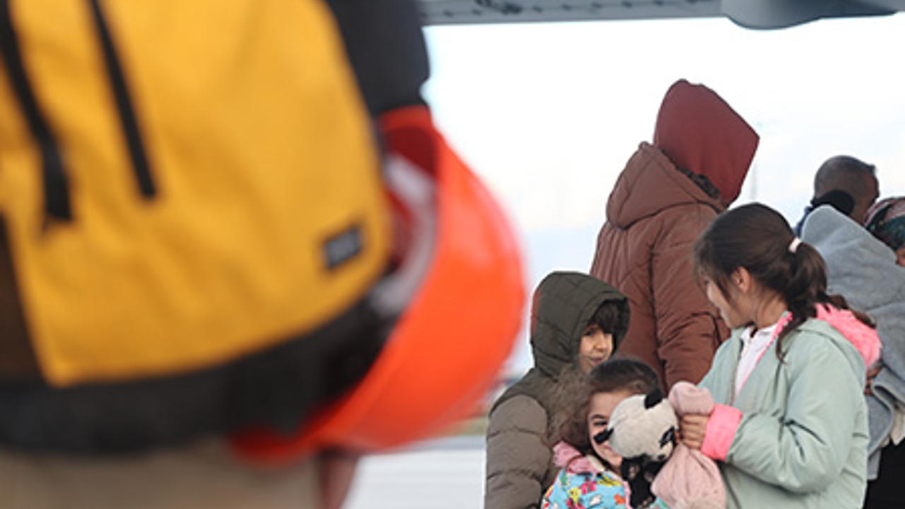 Tahliye taleplerinin ardından Adana'dan İstanbul'a getirilen, aralarında çocukların da bulunduğu 32 depremzede, kendilerini taşıyan uçağın havalimanına iniş yapmasının ardından buradaki askeri personel tarafından karşılandı.