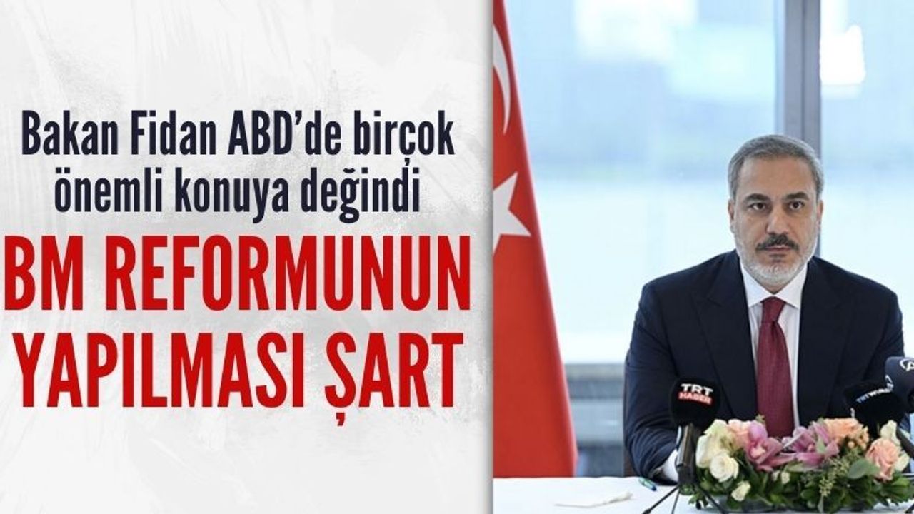 Bakan Fidan, BM Genel Kurulu sırasında diplomasinin kalbinin New York'ta attığını belirterek, "Türkiye'miz ise bu diplomasi trafiğinin tam merkezinde yer aldı. Türkevi, Sayın Cumhurbaşkanı'mızın liderliğinde, Türk dış politikasının geldiği aşamanın vücut bulduğu bir mekana dönüşmüştür." diye konuştu.