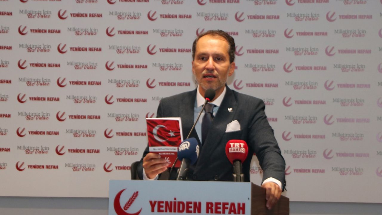 Parti olarak hazırladıkları ve yılda 150 milyar dolara yakın kaynak oluşturma potansiyeline sahip Milli Kaynak Paketi'ne de değinen Erbakan, "Yeniden büyük Türkiye hedefine ulaşmak, borç ve faiz belasından kurtulmak ekonomik manada refaha çıkmak için Yeniden Refah Partisi olarak hazırladığımız 150 milyar dolarlık ilave Milli Kaynak Paketlerimiz ile mümkün olabilir. Bu kitap halkımız, Allah'tan başka kimseye muhtaç olmasın, borç ve faiz ekonomisinden kurtulalım, devlet-millet-özel sektör her sene 100 milyar dolar faiz ödemek zorunda kalmayalım diye hazırlandı. Türkiye'de üretimi istihdamı arttıracak, kaynak sağlayacak 15 proje ve adımla senede 150 milyar dolarlık ilave kaynak oluşturabiliriz." şeklinde konuştu.