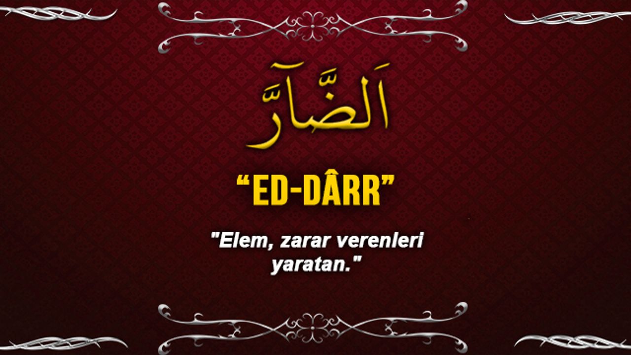 Ed-Dârr esmasının manası : Elem ve zarar verici şeyler yaratan, dilediğine felaket, keder ve şiddet veren, zarara uğratan demektir. Zarara uğratan .Her şer kabul edilenin mutlak var edicisi. Hikmeti gereği elem ve zarar verici şeyleri de yaratan.