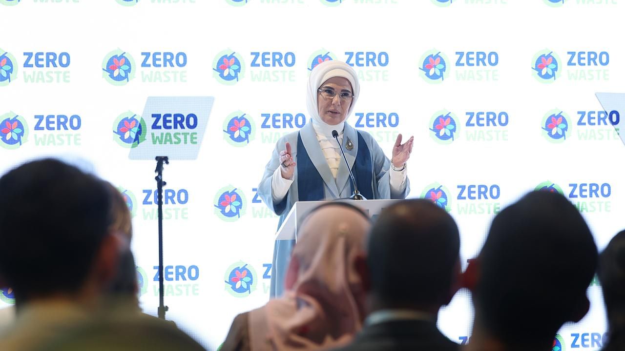 Emine Erdoğan, uygulamayı yaygınlaştırmak amacıyla başkanlığını yürüttüğü "Sıfır Atık Yüksek Düzeyli Şahsiyetler Danışma Kurulu"nun tesis edildiğini, ayrıca BM Genel Sekreteri Antonio Guterres ile dünyanın en kapsamlı uluslararası Sıfır Atık inisiyatifi olan Küresel Sıfır Atık İyi Niyet Beyanı'nı da sivil imzaya açtıklarını kaydetti.