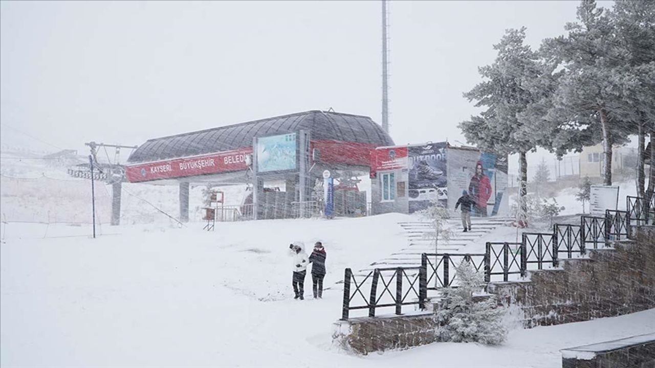 Erciyes Dağı'nın yüksek kesimlerinde gece saatlerinde başlayan kar yağışı, gün içinde de devam ederek kayak merkezinin bulunduğu alanı beyaza bürüdü.
