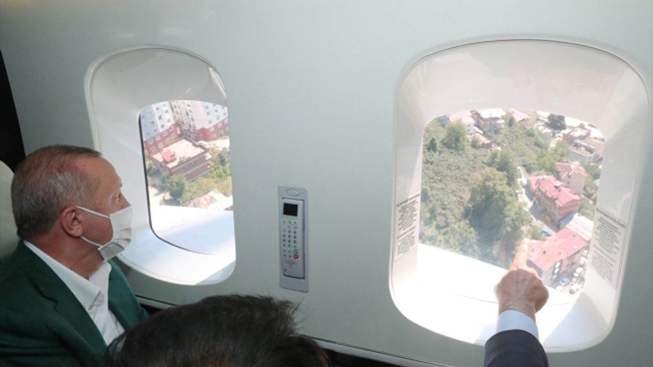 Cumhurbaşkanı Erdoğan, Giresun'da meydana gelen sel felaketi bölgesini havadan inceledi.
