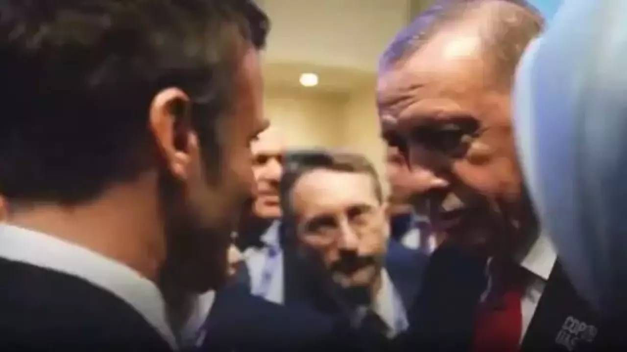 Fransa Cumhurbaşkanı Emmanuel Macron, Birleşmiş Milletler İklim Değişikliği Çerçeve Sözleşmesi 28. Taraflar Konferansı (COP 28) sırasında Dubai'de Cumhurbaşkanı Recep Tayyip Erdoğan ile gerçekleştirdiği spontane sohbetin görüntülerini sosyal medya hesabında paylaştı. Macron, Dubai'deki Dünya İklim Zirvesi'nde devlet liderleriyle yaptığı sohbetlerin kısa bir kolajını paylaştı.