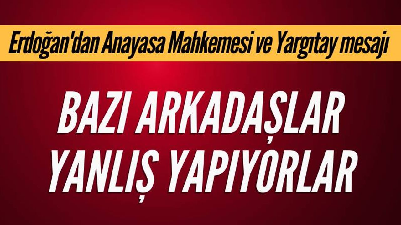 Başkan Erdoğan, "Her şeyden önce Yargıtay'ın bir yüksek mahkeme olduğunu herhalde kimse inkar edemez." diyen Erdoğan, "Anayasa Mahkemesi bu noktada maalesef birçok yanlışları da arka arkaya yapar hale geldi. Bu da bizi ciddi manada üzmektedir." dedi.