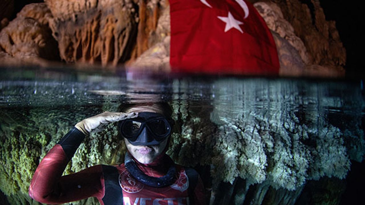 Milli sporcu, buzul döneminden kalıntılarla çevrili Gilindere Mağarası'ndaki suda, paletsiz şekilde tek nefeste 100 metre sınırını aşarak dünya rekorunu kırmış ve adını Guinness Dünya Rekorları Kitabı'na yazdırmıştı.