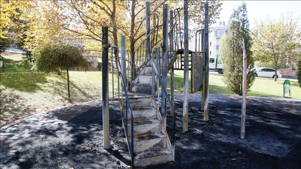 Vatandaşların ihbarı üzerine olay yerine gelen itfaiye ekipleri tarafından söndürülen yangında, çocuk oyun alanı kullanılamaz hale geldi.