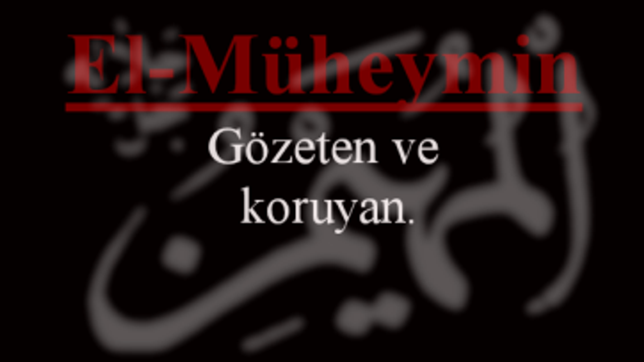El Muheymin esmasının anlamı: Bütün varlığı görüp gözeten, yetiştirip varacağı noktaya ulaştıran. Her an bütün varlıkları gören.