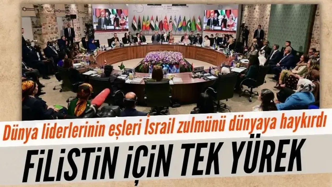 Pek çok ülkeden devlet ve hükümet başkanlarının eşleri ile özel temsilcileri, Cumhurbaşkanı Recep Tayyip Erdoğan'ın eşi Emine Erdoğan'ın ev sahipliğinde Cumhurbaşkanlığı Dolmabahçe Ofisi'nde düzenlenen "Filistin İçin Tek Yürek" temalı zirvede konuştu.