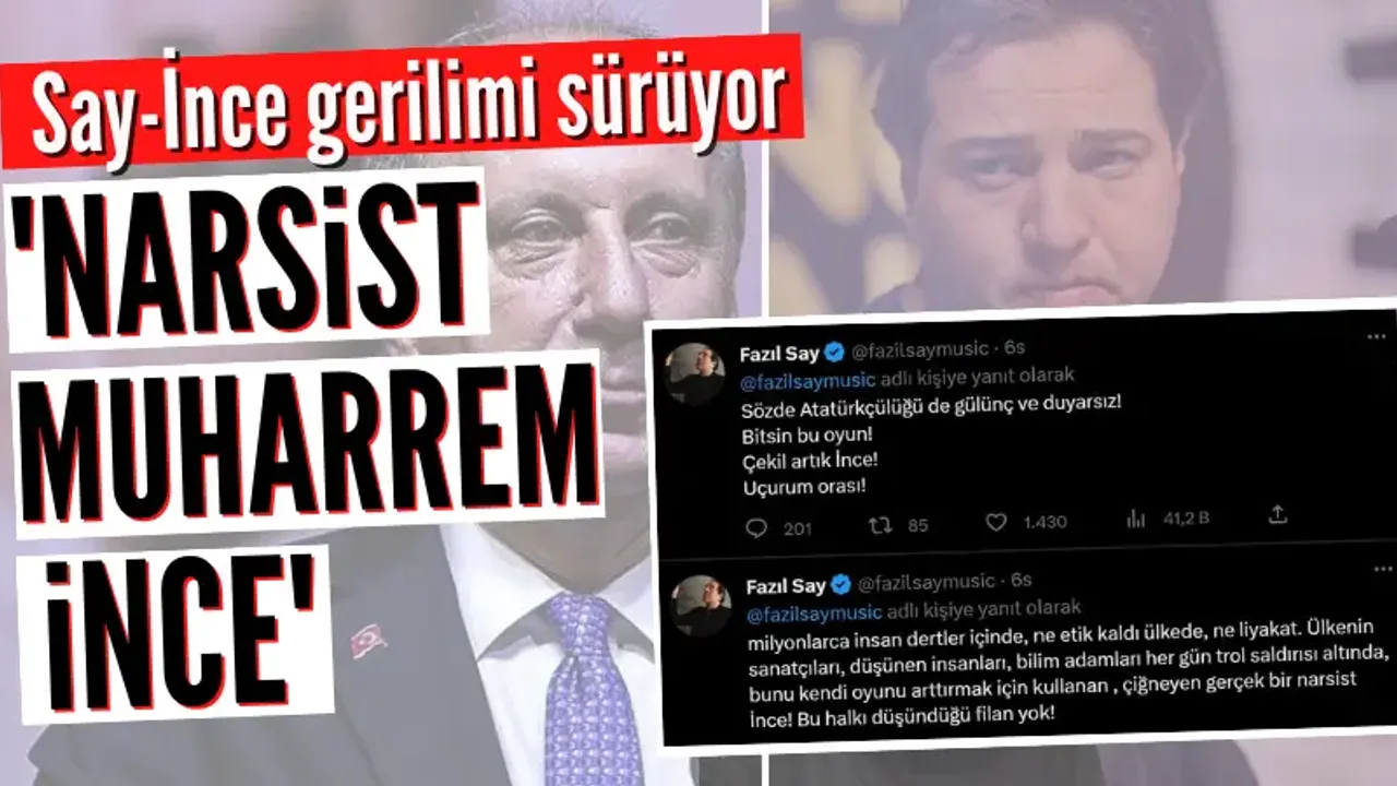 İnce'nin eleştirilerinin ardından Fazıl Say dayanamayarak Twitter'dan eleştirilerini sürdürdü. İnce'nin açıklamasını alıntılayan Say, Memleket Partisi liderine narsist benzetmesinde bulunarak, "Pandemide iban gösteren, ekonomide batan, fakirleşen, depremde aciz kalan, Kızılay’ın çadır sattığı utanç veren bir haldeyiz. Ne eğitim kaldı ne demokrasi. Değişim şart! 85 milyonu şimdi delirten şuursuz adam İnce.Yeter artık! Zor durumda bu halk!Yeter! Oyun bitti!Hayatlarımız bu! Milyonlarca insan dertler içinde, ne etik kaldı ülkede, ne liyakat. Ülkenin sanatçıları, düşünen insanları, bilim adamları her gün trol saldırısı altında, bunu kendi oyunu arttırmak için kullanan , çiğneyen gerçek bir narsist İnce! Bu halkı düşündüğü filan yok!" dedi.