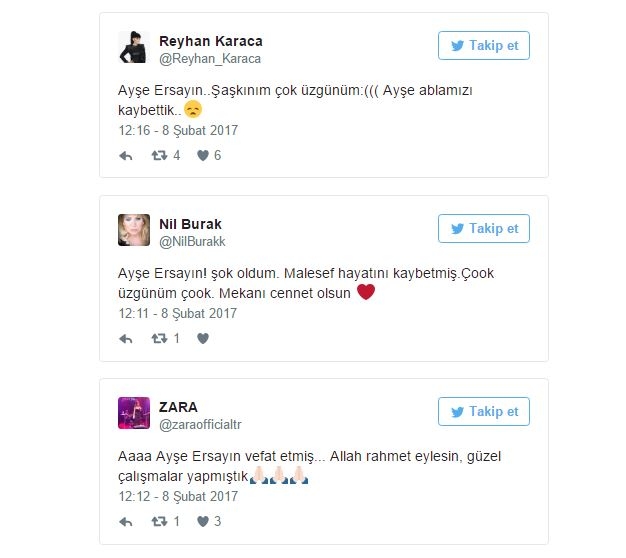 Ersay'ın vefatının ardından ünlü isimler sosyal medya hesaplarından başsağlığı mesajı yayınladı.