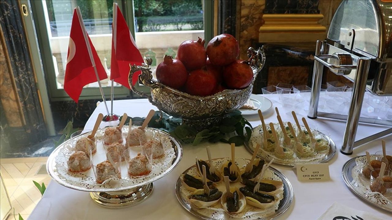 Etkinlikte, davetlilere, Türk mutfağından zeytin yağlı yaprak sarması ve içli köfte gibi örnek lezzetlerin yanı sıra asırlık Türk kahvesi ikram edildi.