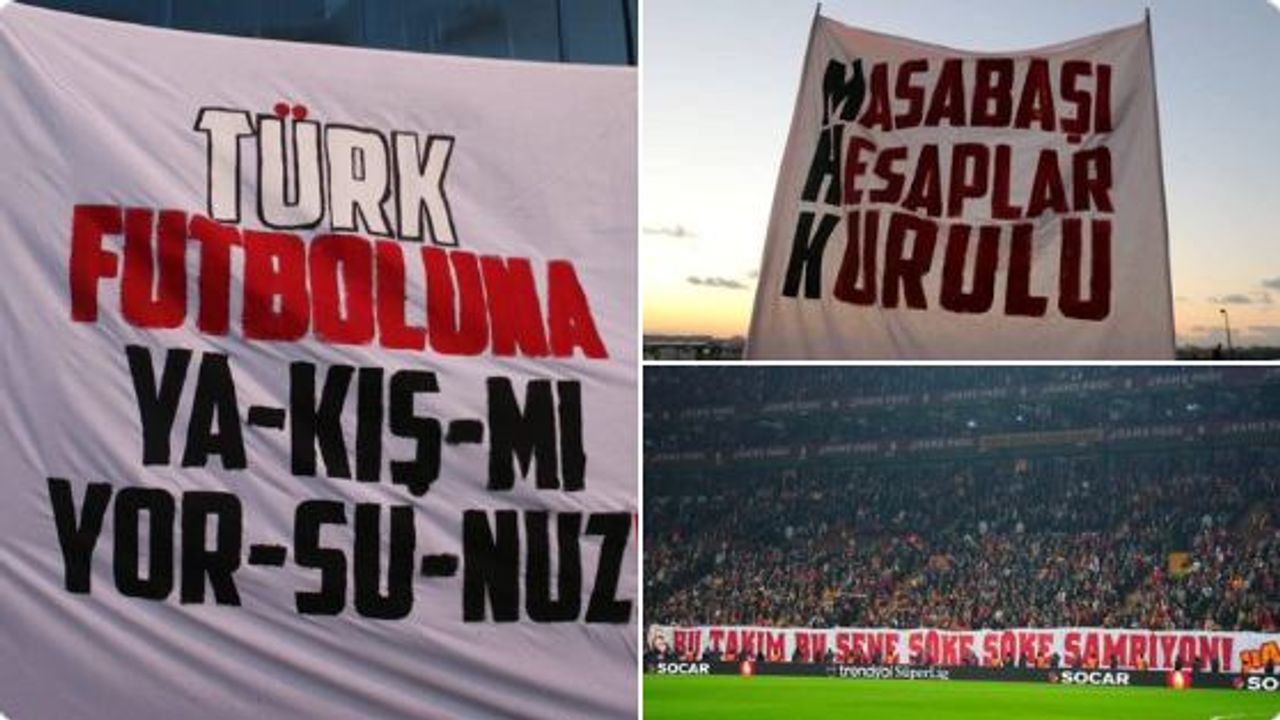 Paylaşımda, Galatasaraylı taraftarların "Türk futboluna yakışmıyorsunuz", "Masabaşı Hesaplar Kurulu" ve "Bu takım bu sene söke söke şampiyon" şeklindeki pankartlarına yer verildi.
