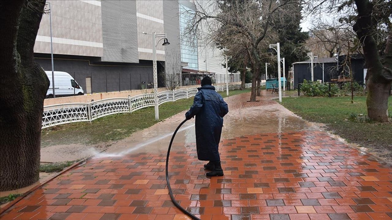 Kentte dün etkili olan sağanak ve dolunun ardından taşan Allaben Deresi ve çevresindeki parkta temizlik çalışmaları yürütülüyor.