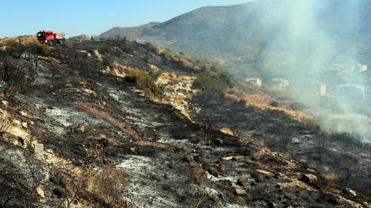 Soğutma çalışmalarının sürdüğü bölgede içinde zeytin ağaçlarının da bulunduğu yaklaşık 5 hektar makilik alan zarar gördü.