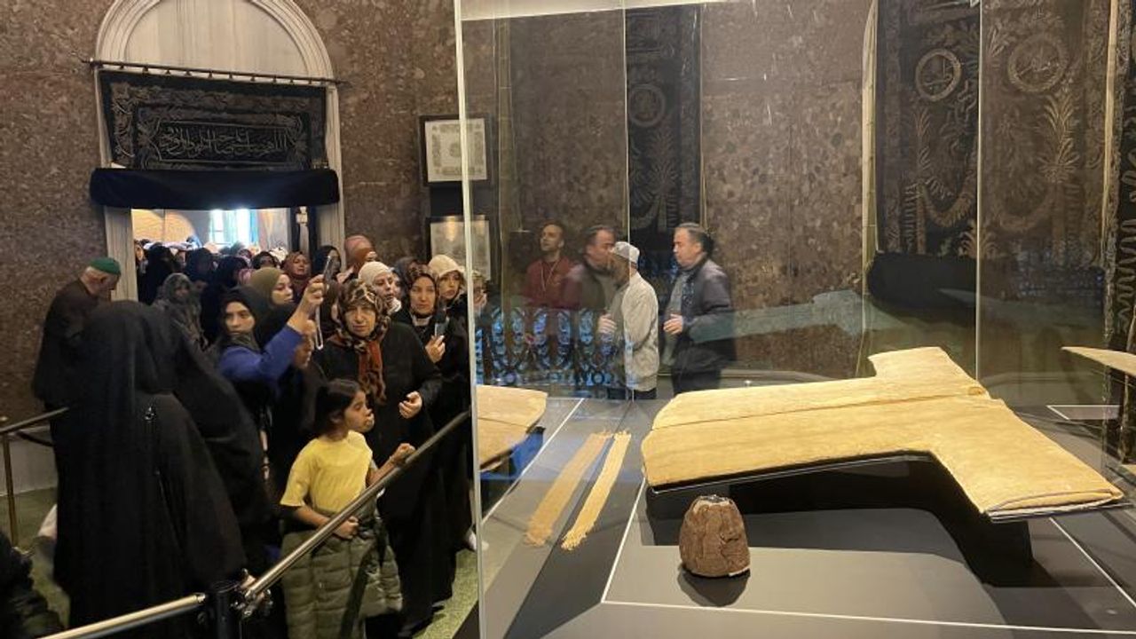 Fatih’teki Hırka-i Şerif Camisi'nde bulunan kutsal emanet, arife günü son kez halkla buluştu.