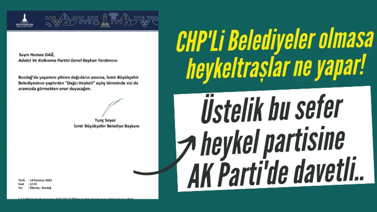 İzmir Büyükşehir Belediyesi Başkanı Tunç Soyer imzalı davette, AK Parti Genel Başkan Yardımcısı Hamza Dağ'a heykelin açılışı için yazı gönderildi.