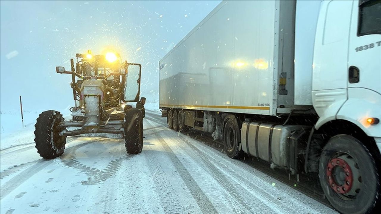 Karayolları Bölge Müdürlüğü ekipleri, yolda kar temizleme çalışmalarını sürdürüyor.