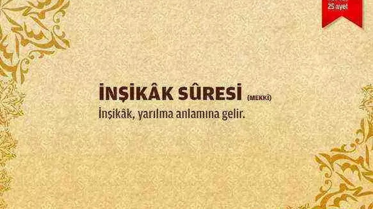 Kuranı Kerim'de yer alan İnşikak Suresi ne anlama gelmektedir? İnşikak Suresi niçin indirilmiştir? İnşikak suresi kaç ayettir? Sizler için İnşikak Suresine dair merak edilenleri sizler için araştırdık. İşte ayrıntılar...