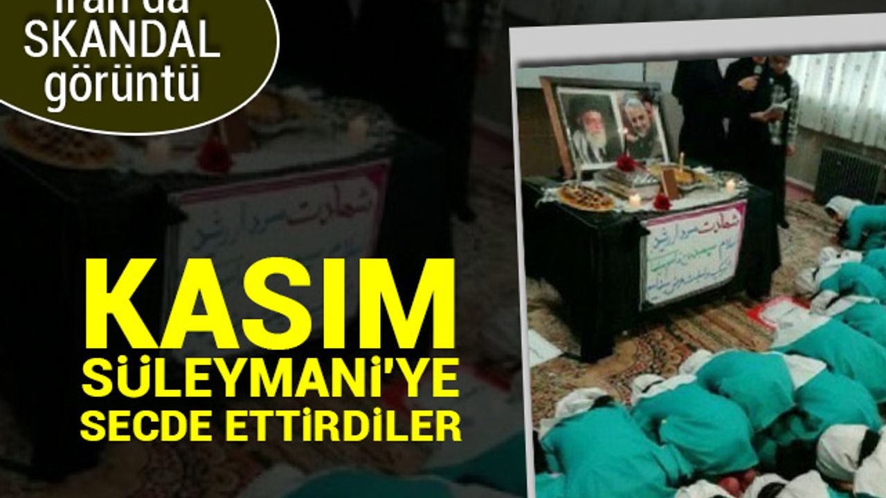 Süleymani'nin ölümünün ardından çekilen bir fotoğraf da çok tartışılacak cinsten. Kasım Süleymani ve Humeyni'nin fotoğrafının olduğu masanın önündeki çocuklar fotoğraflara doğru secde ediyorlar.