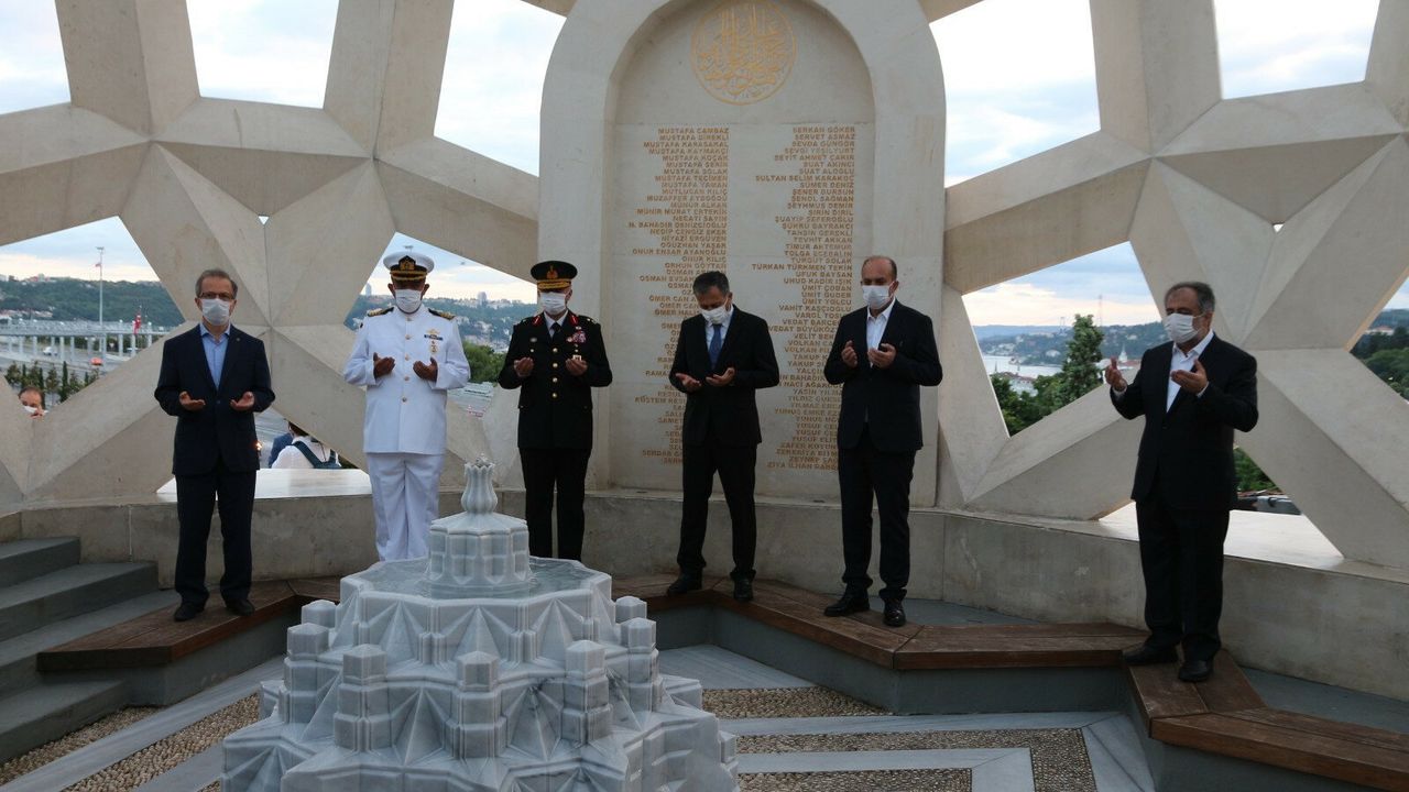 Törende Rektör Prof. Dr. Gülfettin Çelik, İstanbul Valisi Ali Yerlikaya, İl Jandarma Komutanı Tuğgeneral Nuh Köroğlu, İl Emniyet Müdürü Zafer Aktaş ve Sahil Güvenlik Marmara ve Boğazlar Bölge Komutanı Albay Tayfun Paşaoğlu ile birlikte, 15 Temmuz Şehitler Anıtı başında İl Müftüsü Prof. Dr. Mehmet Emin Maşalı'nın Kur'an tilavetini dinleyerek şehitlerimiz için dua ettiler.