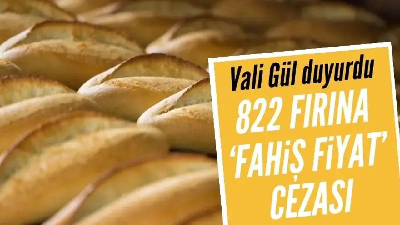 İstanbul'da ekmek fiyat tarifesine uymayan fırınlara yönelik olarak İstanbul Valiliği tarafından başlatılan çalışma kapsamında, Vali Davut Gül, belirlenen tavan fiyattan daha yüksek satış yaptıkları tespit edilen 822 fırın hakkında tutanak tutulduğunu açıkladı.
