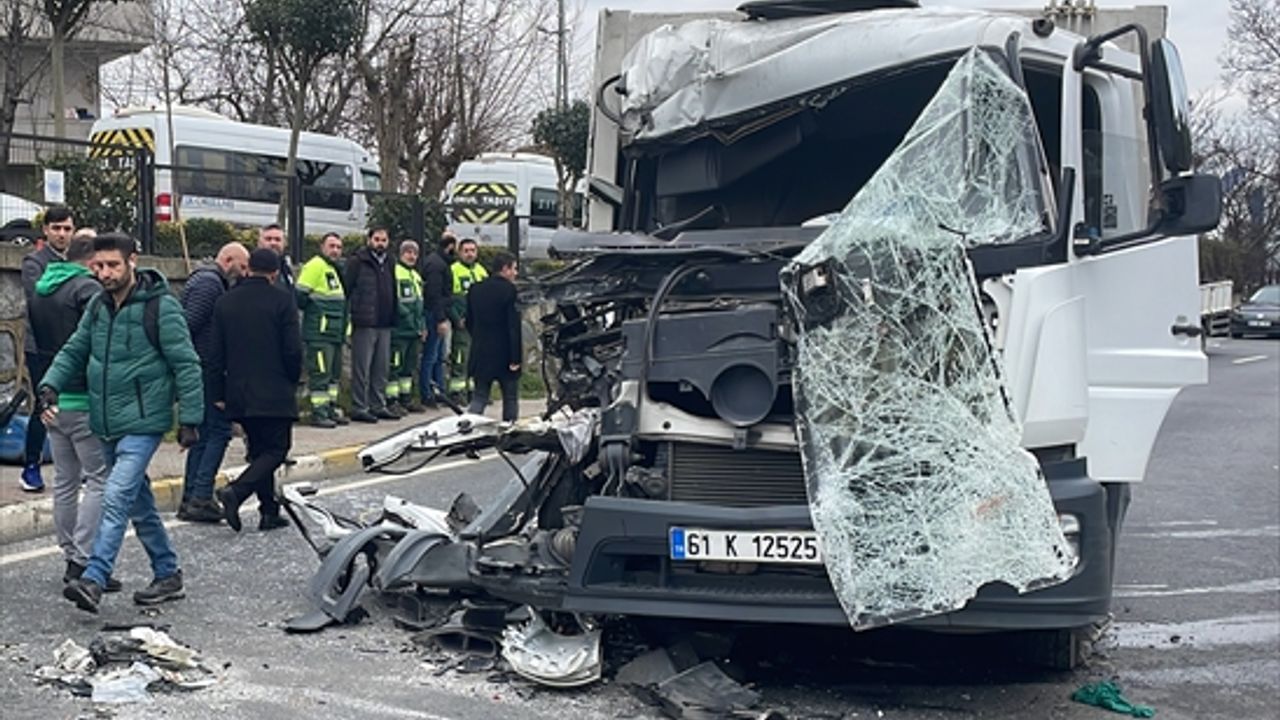 Adnan Kahveci Caddesi'nde seyreden bir çöp kamyonu, duraktan yolcu alan İETT otobüsüne arkadan çarptı.