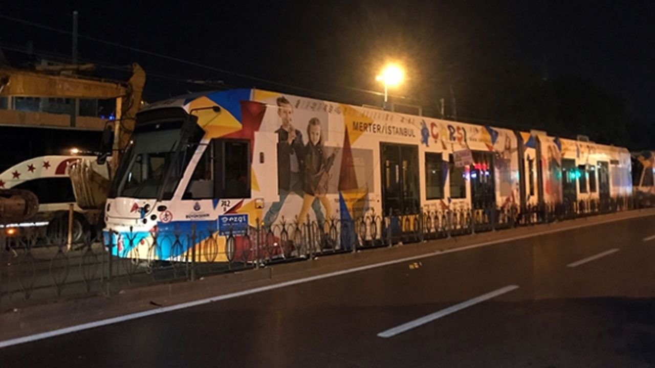 Tramvaya enerji sağlayan elektrik hattındaki kablolar, bir tırın üzerindeki iş makinesinin çarpması sonucu koptu.