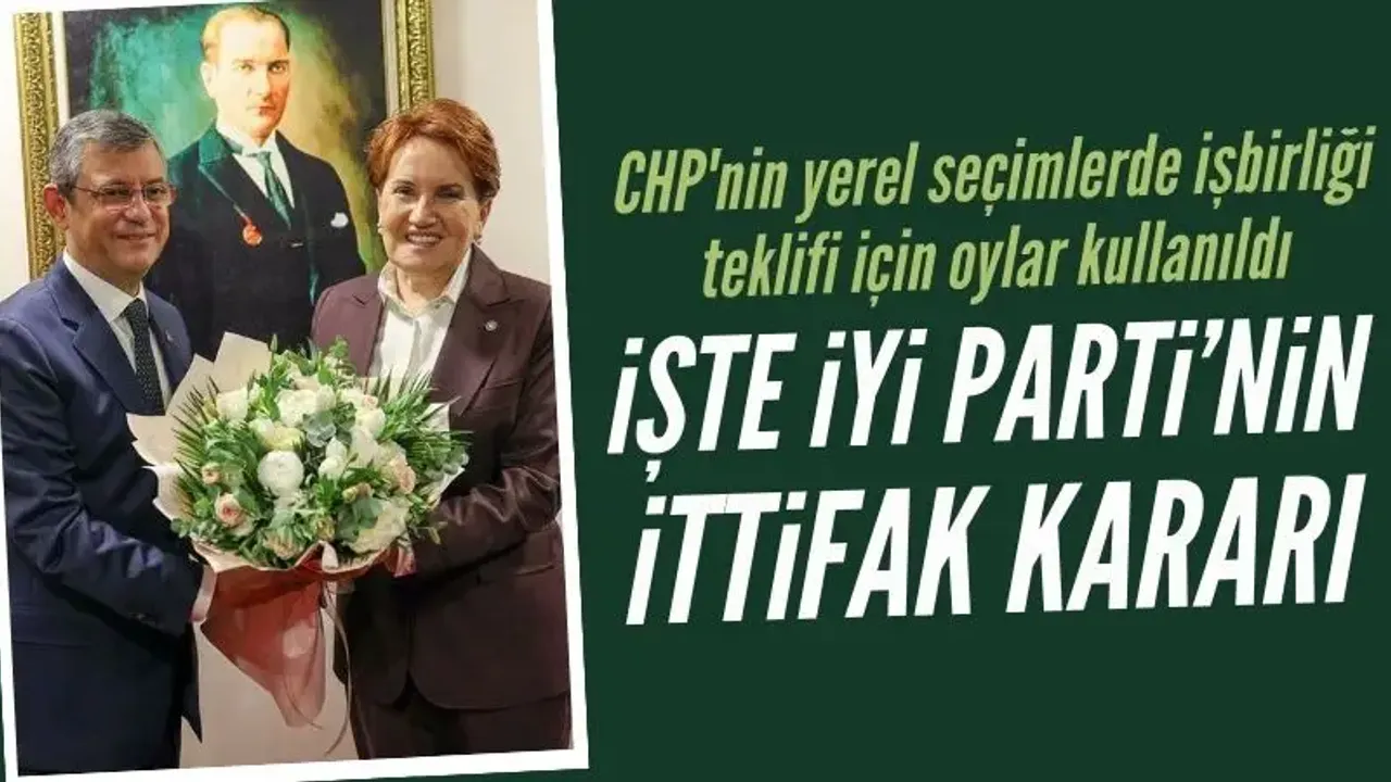 Yaklaşık 3 saat süren toplantıda, CHP Genel Başkanı Özgür Özel'in İYİ Parti'ye yönelik yerel seçimde iş birliği teklifi görüşüldü. Partinin Genel İdare Kurulu, oy çokluğuyla CHP'nin yerel seçimde iş birliği teklifini reddetti.