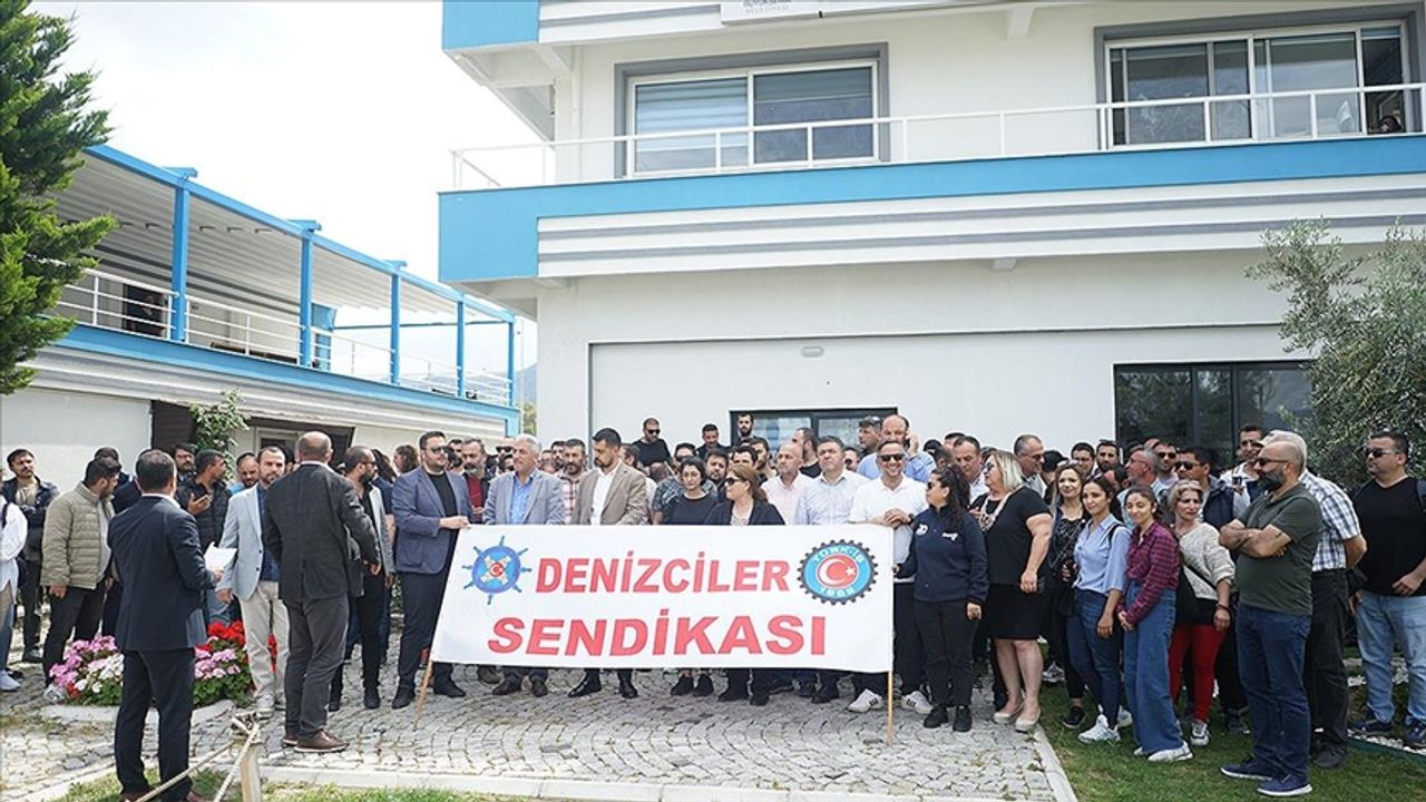 İZDENİZ AŞ çalışanlarından oluşan bir grup, Üçkuyular Mahallesi'ndeki İzmir Marina'da bir araya geldi. İZDENİZ AŞ'ye bağlı gemilerden çalan düdüklere çalışanlar alkışlarla karşılık verdi.