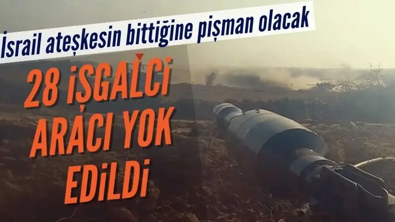 Son 24 saatte Gazze'deki tüm cephelerde İsrail ordusuna ait 28 askeri aracın hedef alındığına dikkat çekilen açıklamada, söz konusu araçlardan bazılarının tümüyle bazılarının da kısmen imha edildiği kaydedildi.