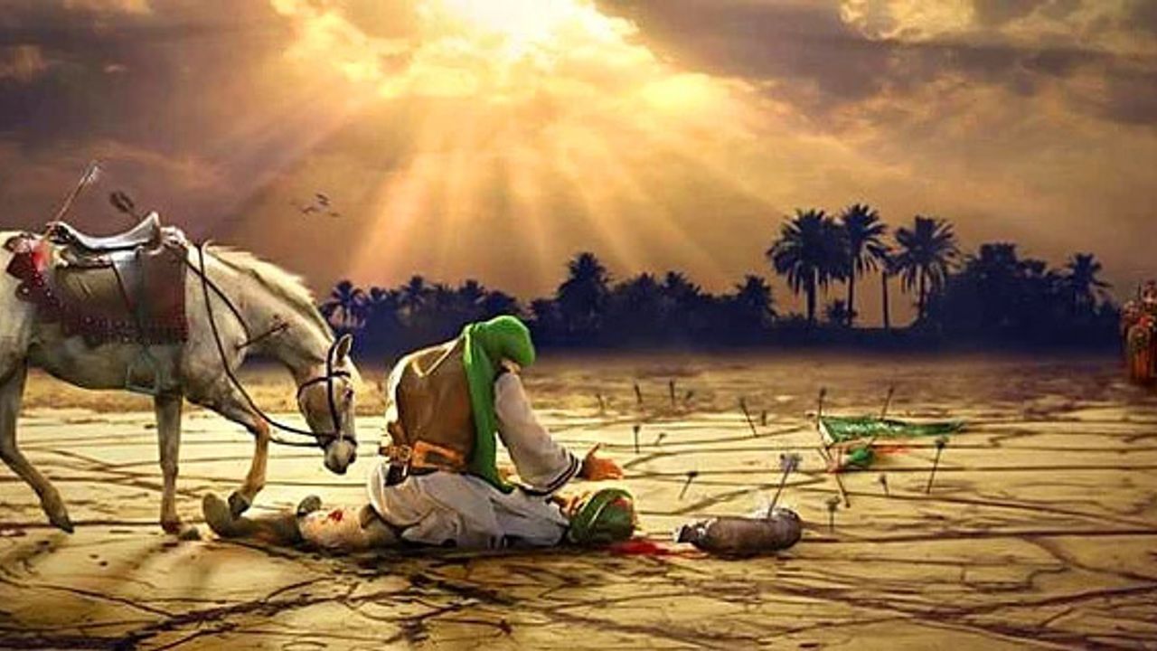 Yaklaşık 70 yareni ve ailesi lie Kûfe'ye doğru yola çıktı. Sayıca az olan Kûfeli taraftarlar, Yezid'in yandaşları tarafından bastırıldı. Hüseyin ve beraberindeki 70 kişi, Kerbela'da Yezid'in 4500'e yakın adamıyla karşılaştı. Çıkan savaşta Hüseyin'in, 6 aylık bebeği susuzluktan ölmek üzereydi ve oğlunu kucağına alarak Yezid'in karşısına dikildi. Oğlu için Yezid'den bir yudum su istedi ancak Hurmala bin Kahil, çocuğu okla boynundan vurarak şehit etti.