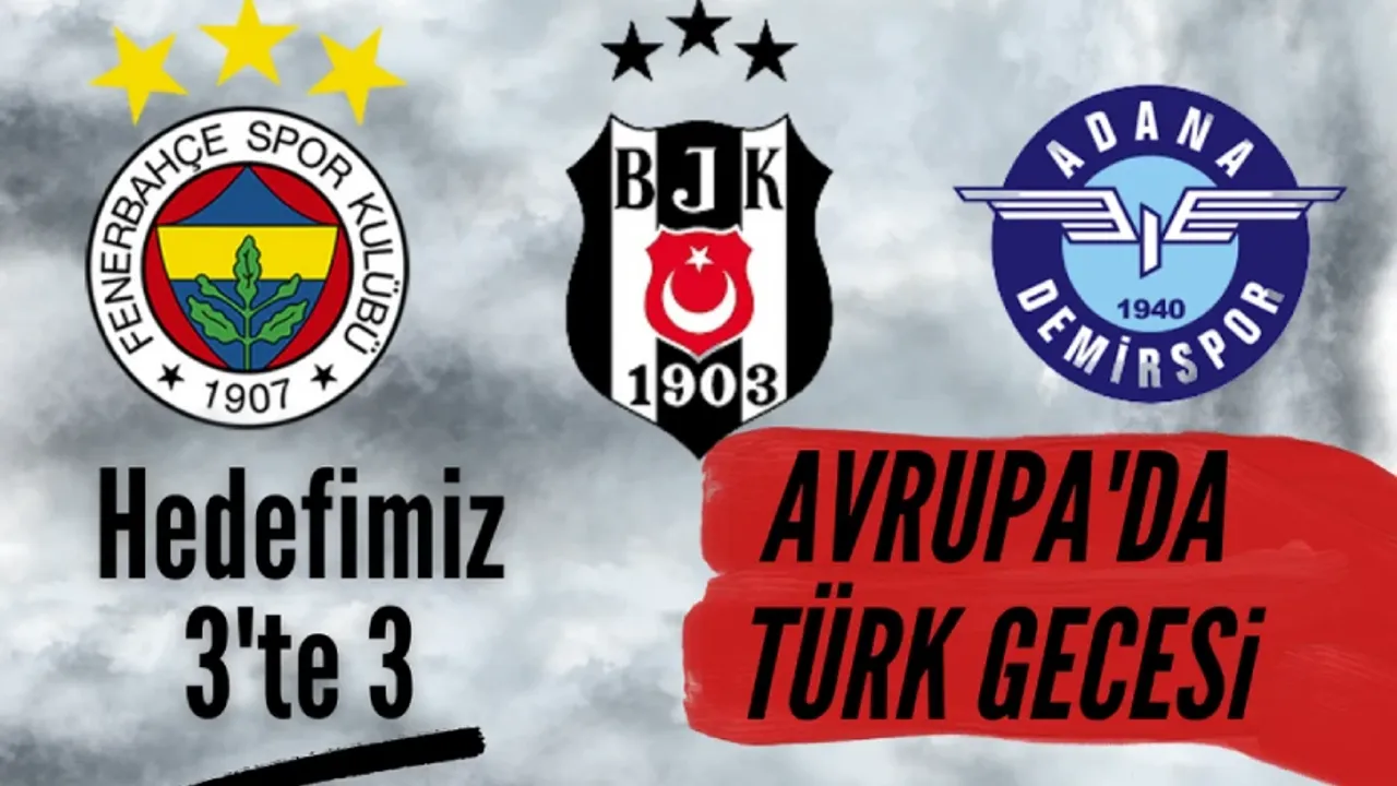 Türkiye'nin güçlü Süper Lig takımları olan Adana Demirspor, Fenerbahçe ve Beşiktaş, UEFA Avrupa Konferans Ligi'nin 3. ön eleme turunun rövanş maçlarında sahaya çıkacak.